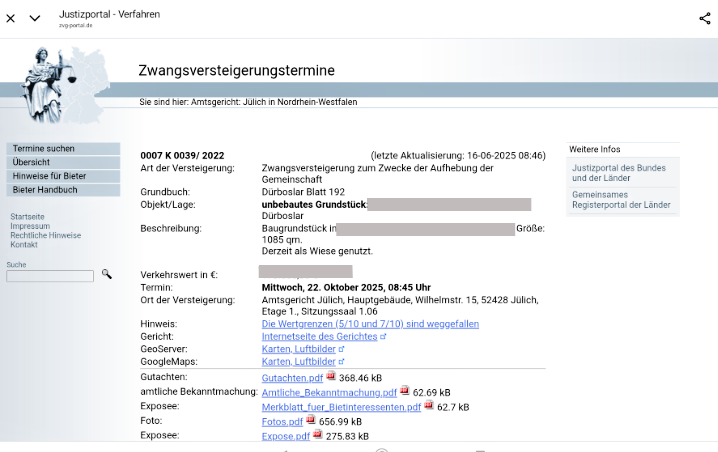 Ich begleite Sie professionell bei der Suche, Bewertung und Teilnahme an Immobilienversteigerungen, damit Sie keine teuren Fehler machen.